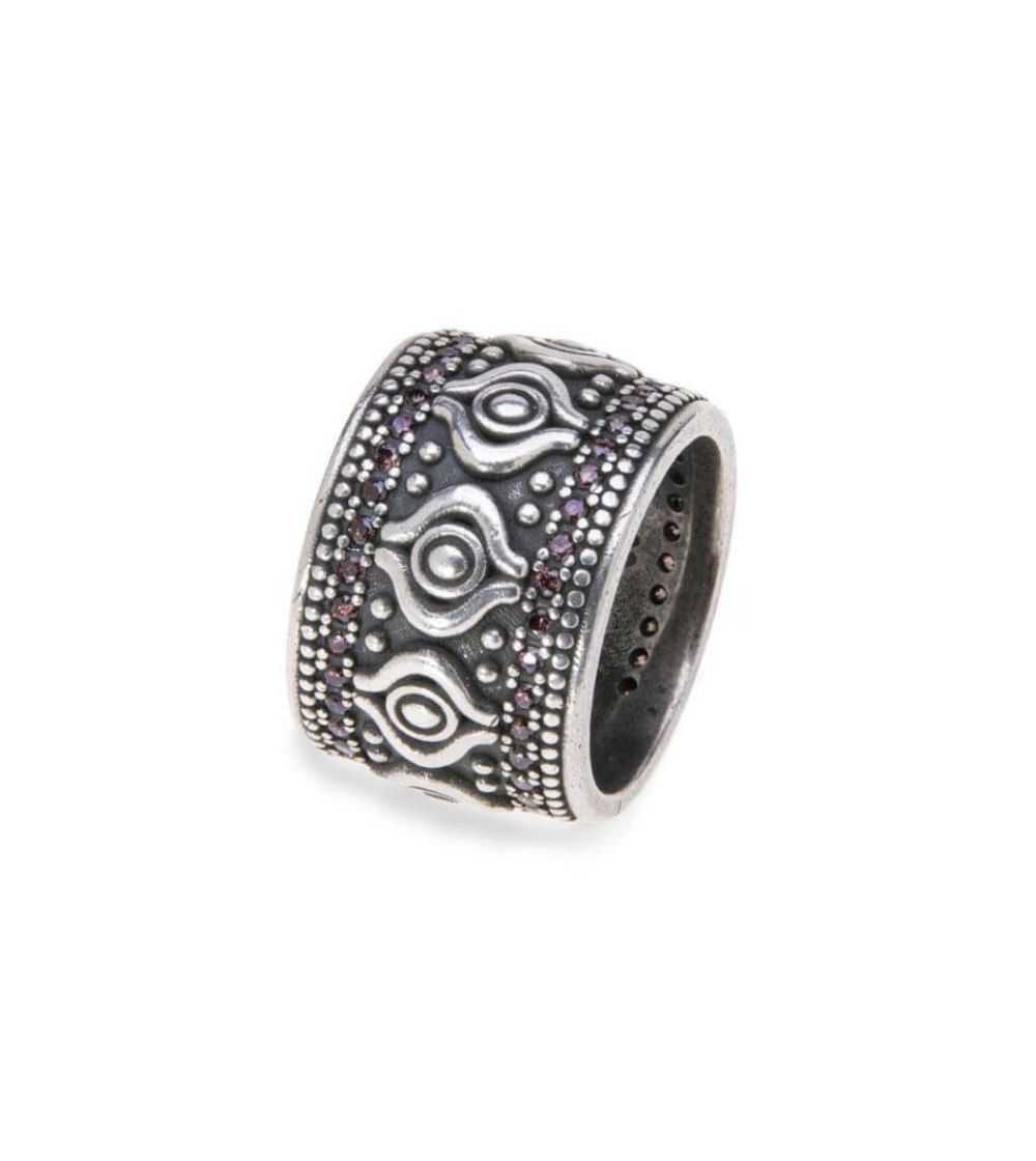 1Anillo PLATADEPALO con formas étnicas, de Plata 925 envejecida y circonitas brown. Tiene una anchura de 16 mm.Este anillo tiene la talla 14. Puedes pedirlo también en talla 12,16,18. Recuerda que necesitarás una talla más de lo que normalemente llevas por su anchura. Queda espectacular.