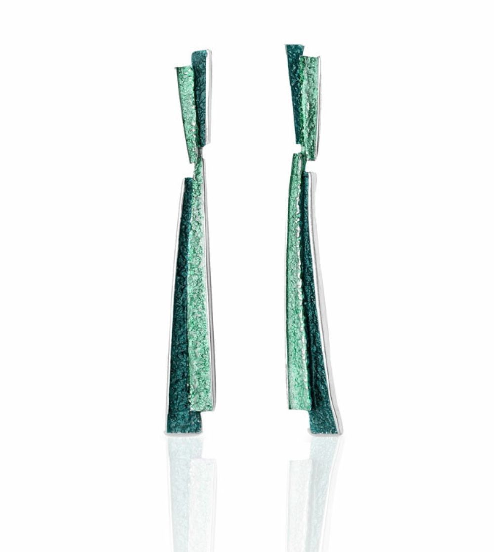 Pendientes colección Troia plata colgar dos piezas en esmalte al ácido color verde.